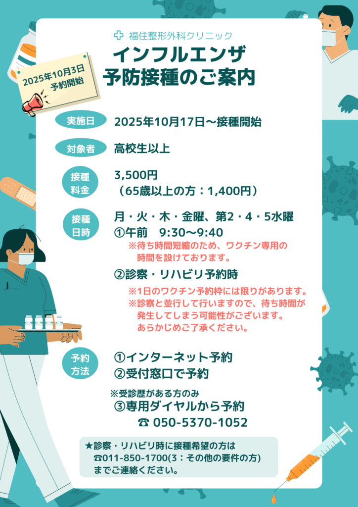「自由診療(注射)」ではインフルエンザワクチンの予約はできません。